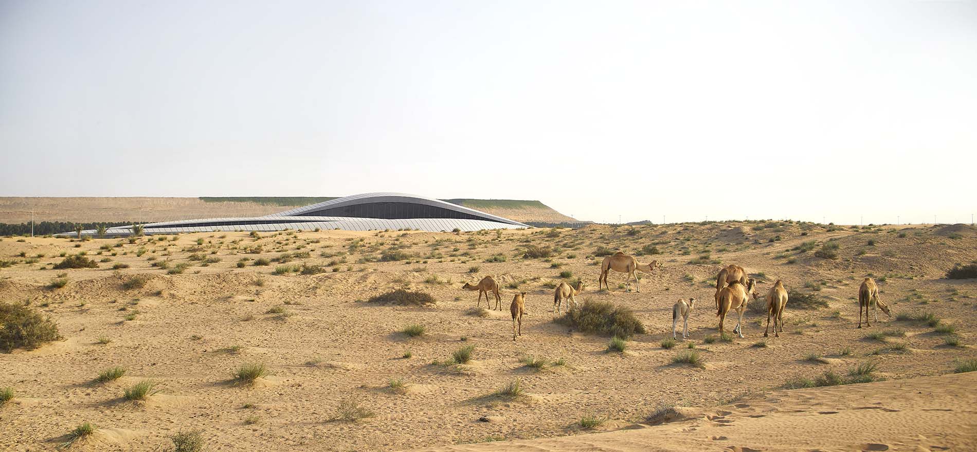El diseño de la sede responde a su entorno a través de una serie de “dunas” interconectadas, orientadas y moldeadas para optimizar las condiciones climáticas locales. Integrada en el contexto del desierto de Al Sajaa en Sharjah, el diseño refleja el paisaje circundante, formado por los vientos predominantes en dunas y crestas de arena.